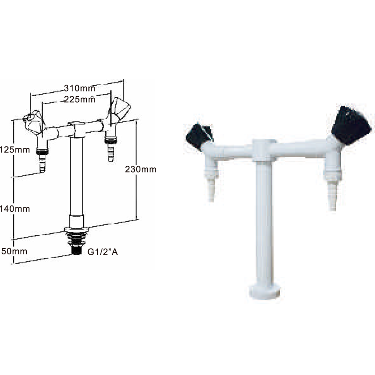 Laboratory Fittings Double Way Bench-top T-style Faucet, standard size, in high quality brass material. Be popular in different types laboratories. Superior performance and durability, easy to operate, real stuff, cost-effective!