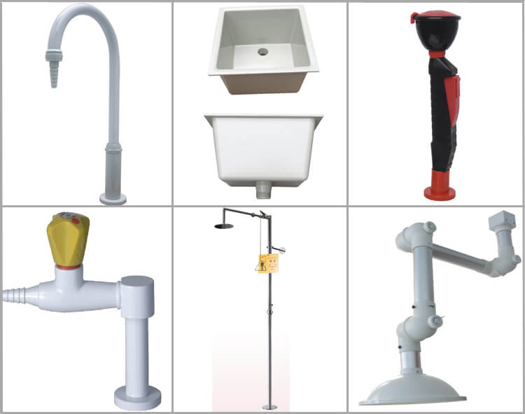 washer,PP sink, faucet, gas cock, universal fume extraction hood, dome